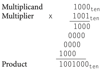 Using 4-bit numbers to save space, multiply 2ten x 3ten, or 0010two x 0011two.
